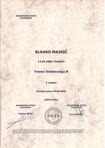 KDO: trener Slavko Majkić, A kickboxing licenca -reprezentant Slovenije + gosti